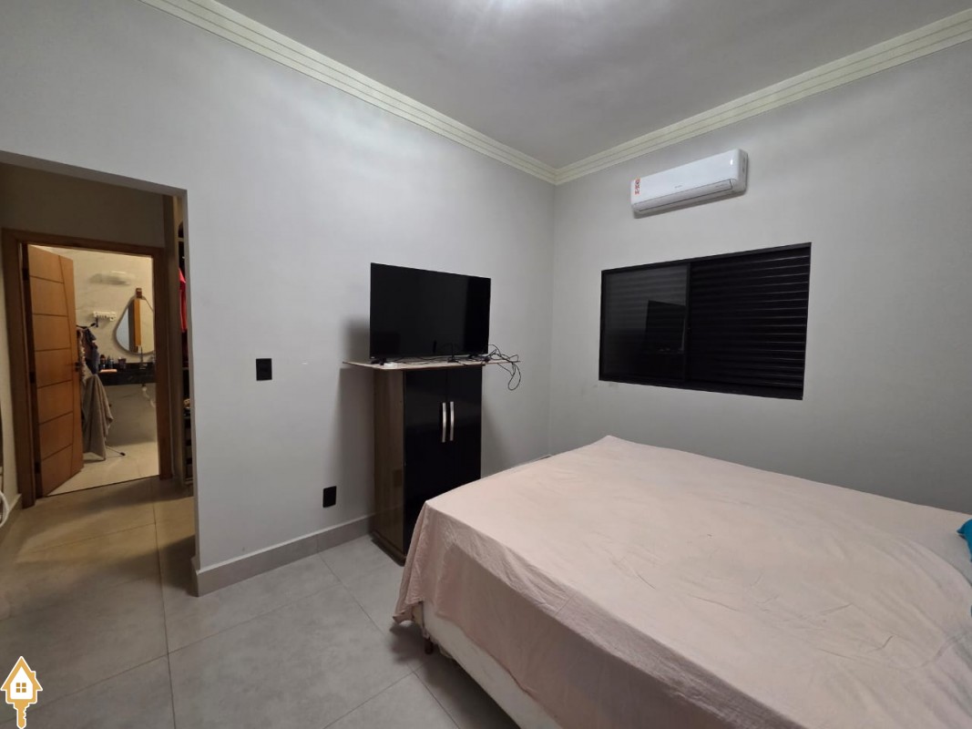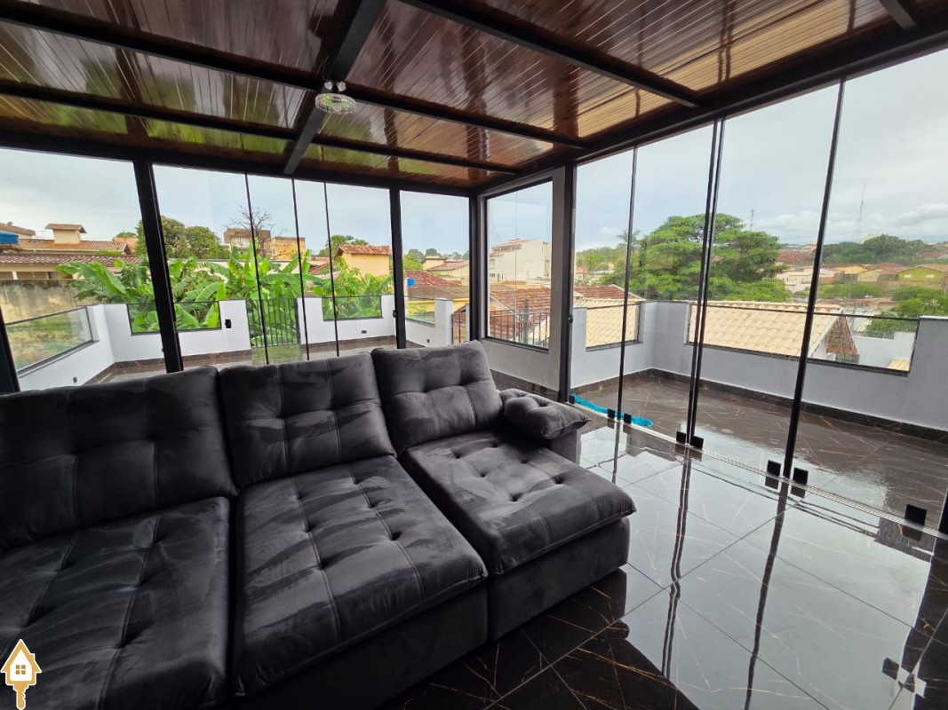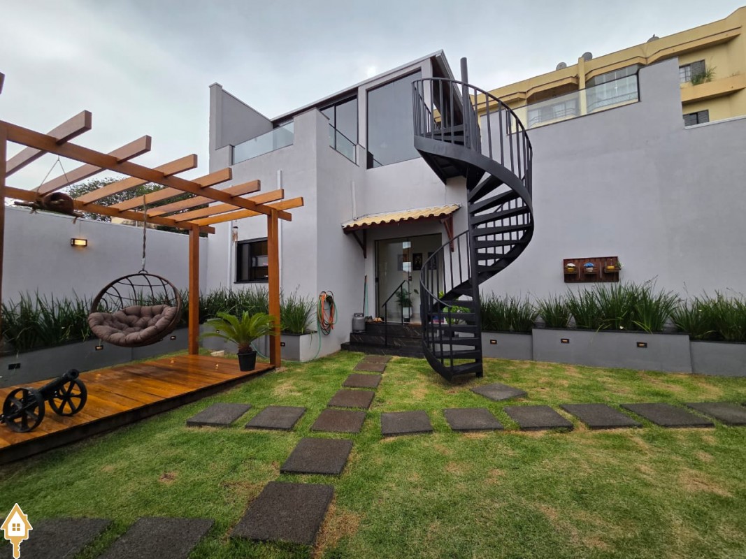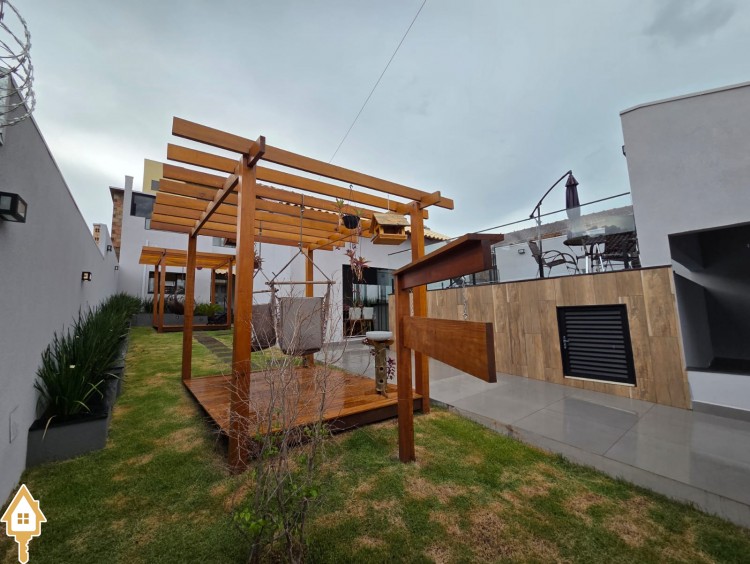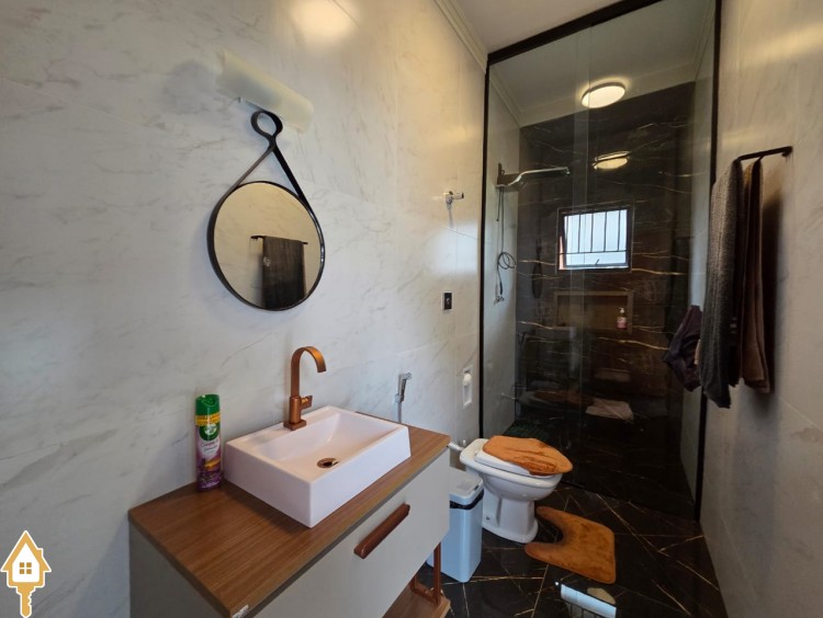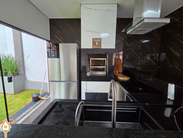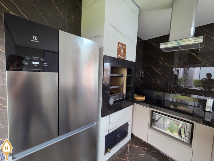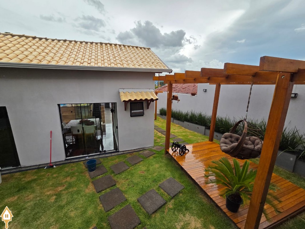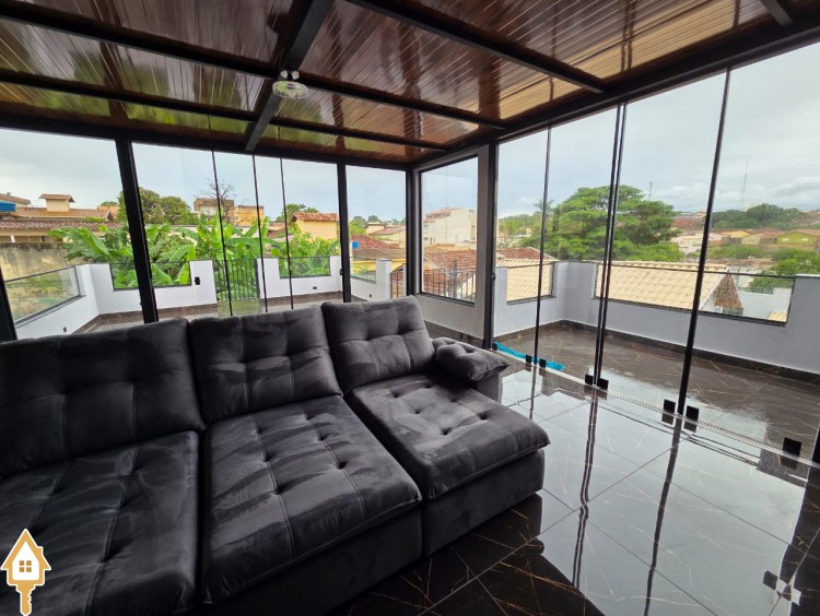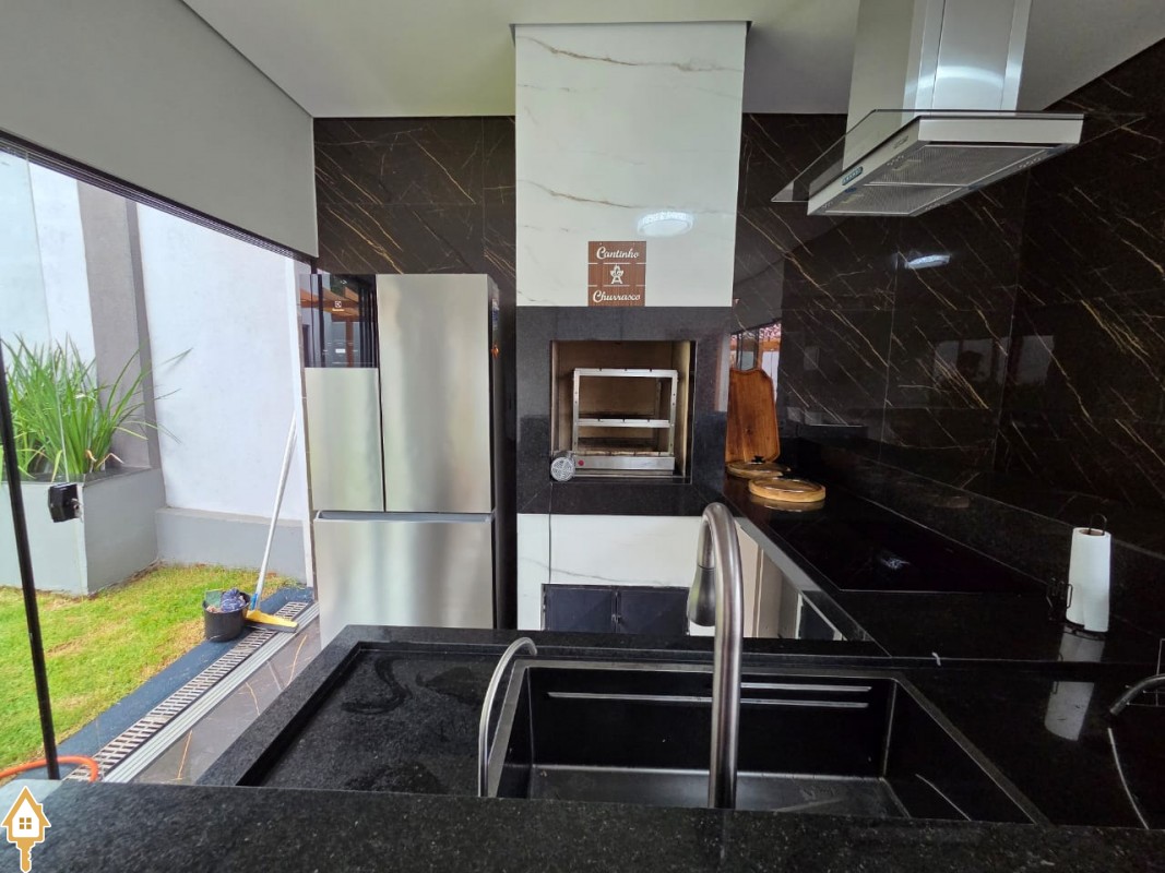 Esta bela casa está construída em um terreno com 384 m², rica em planejados, belíssima iluminação, todas as soleiras e pias em granito São Gabriel.