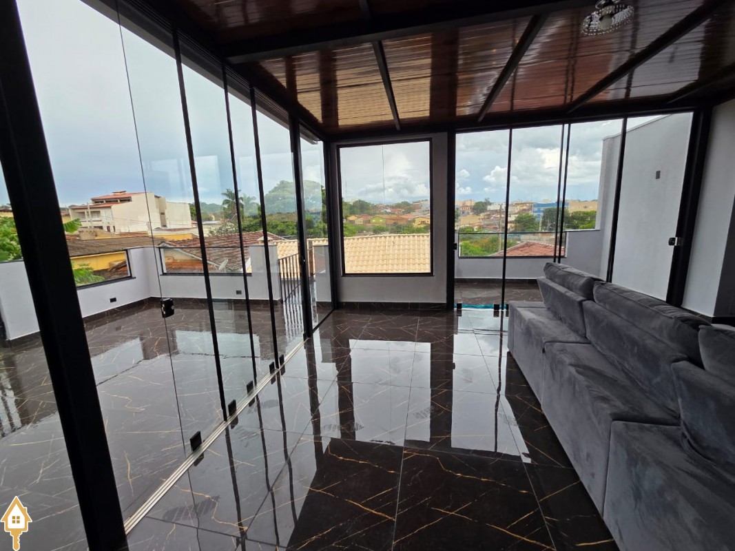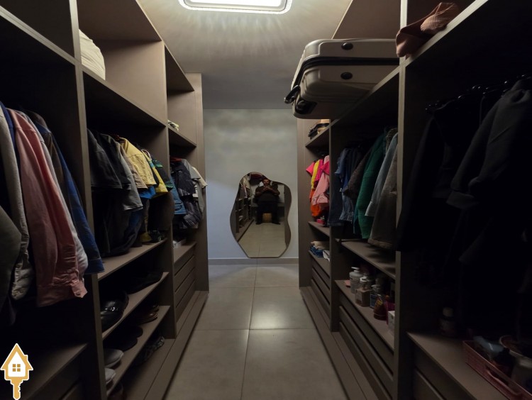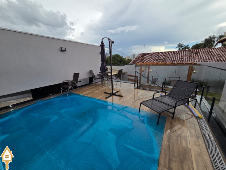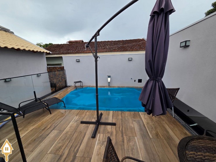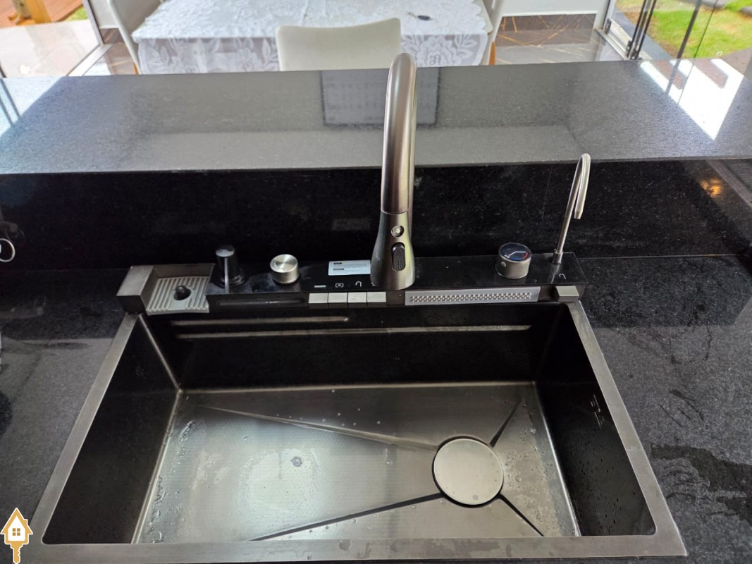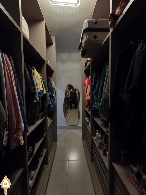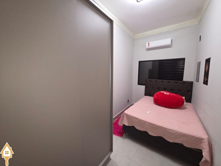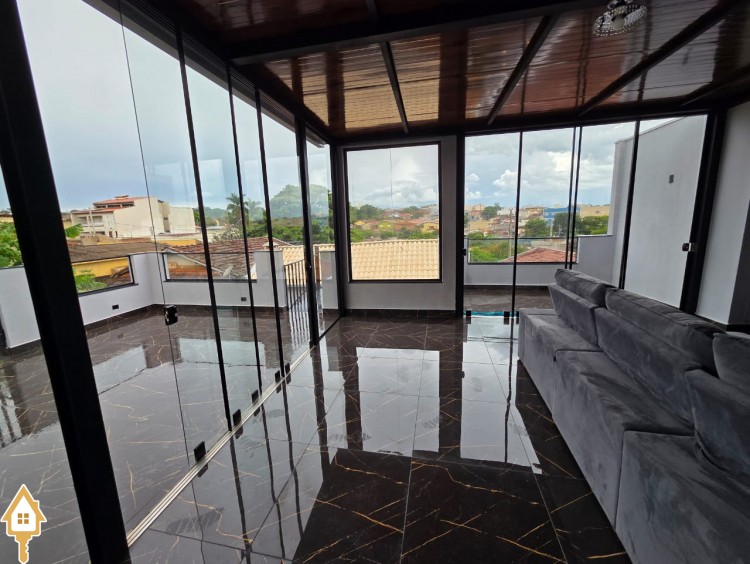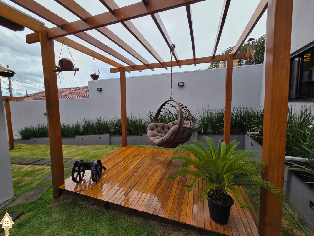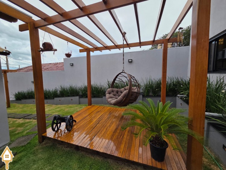 Esta bela casa está construída em um terreno com 384 m², rica em planejados, belíssima iluminação, todas as soleiras e pias em granito São Gabriel.