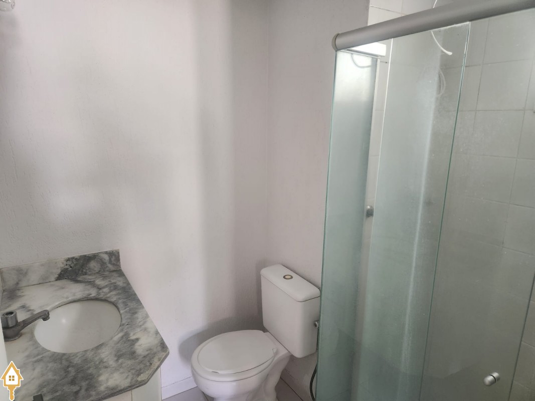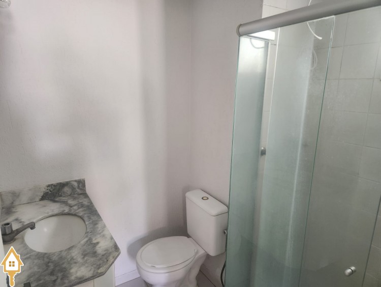 . Banheiro social com armário e blindex
