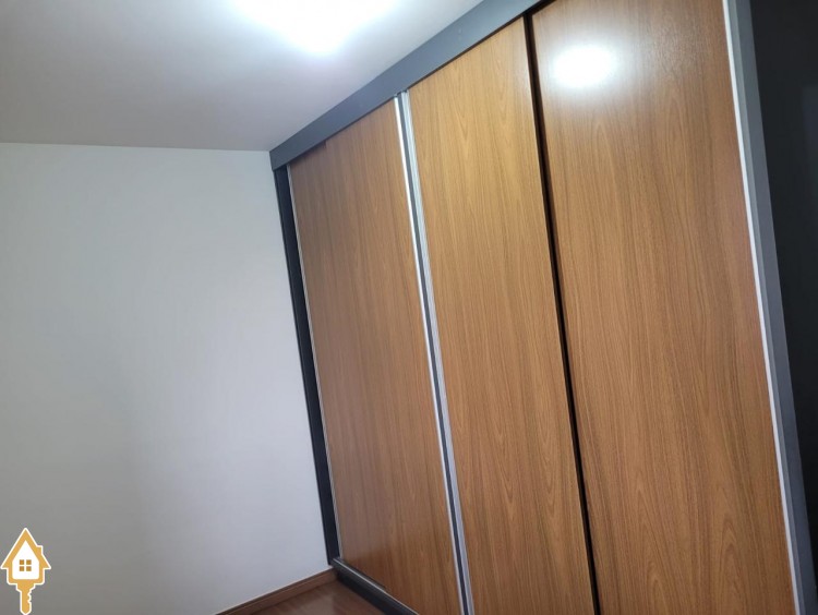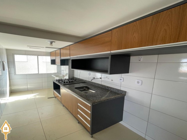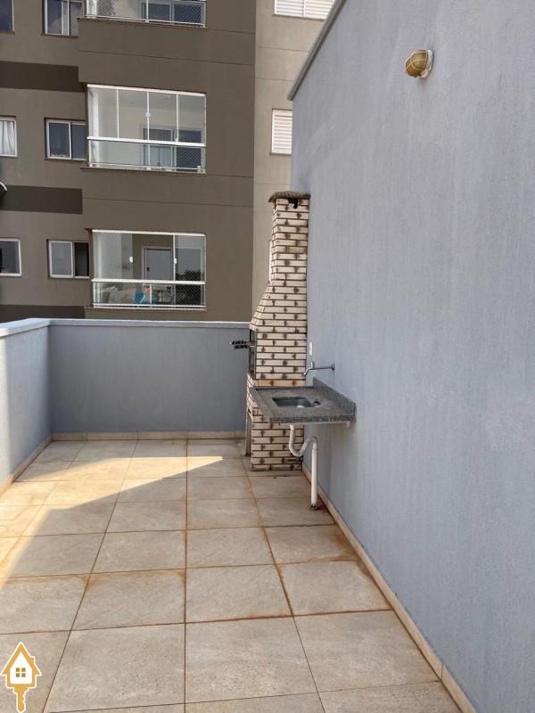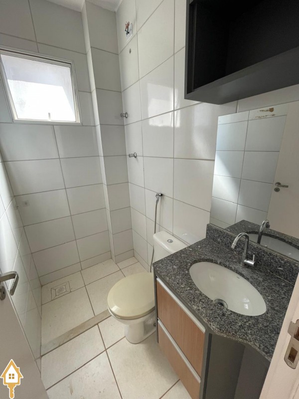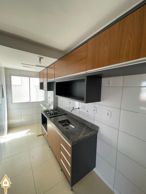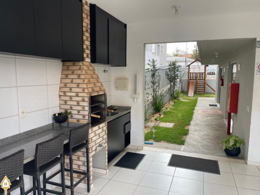 O condomínio oferece lazer com varanda gourmet com churrasqueira, mercado de autoatendimento, playground, bicicletário, salão de festas, elevadores e portaria 24h por R$250,00 mensais.